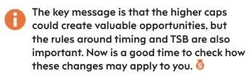 The higher concessional cap may also create extra opportunities through catch-up concessional contributions. If your TSB is less than $500,000 at 30 June of the previous year, you may be able to use unused concessional cap amounts from the previous five years. In some cases, this could allow a very large deductible contribution to be made.