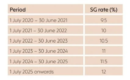 Employers should prepare for ongoing, annual increases to the SG rate over the coming years. The following already-legislated increases to 12% by 2025 will proceed as follows: