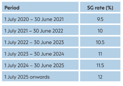 The increase in the SG rate to 12% is the last step in a plan that’s been rolling out over the past few years. Here’s how the SG rate has been increasing